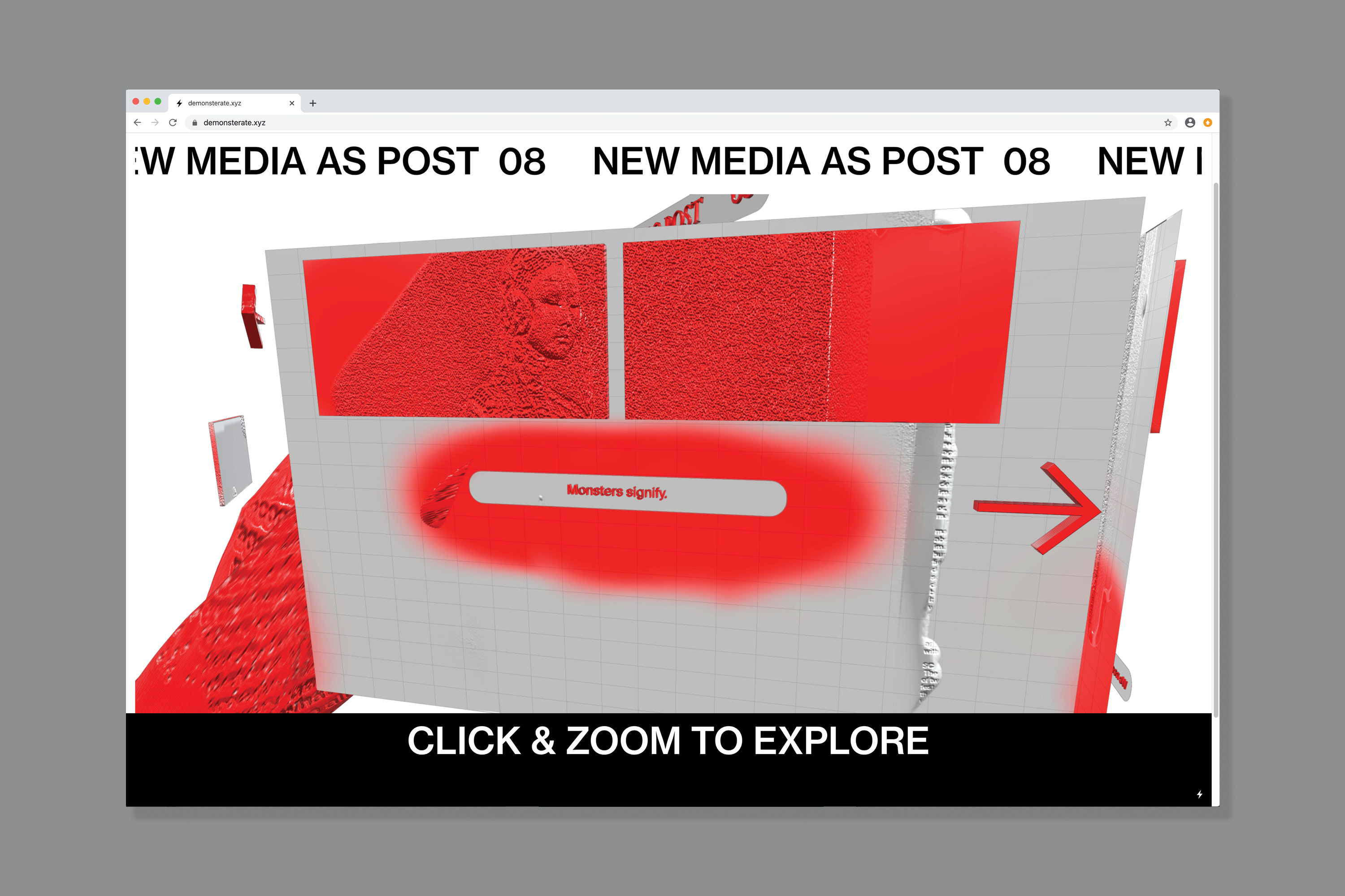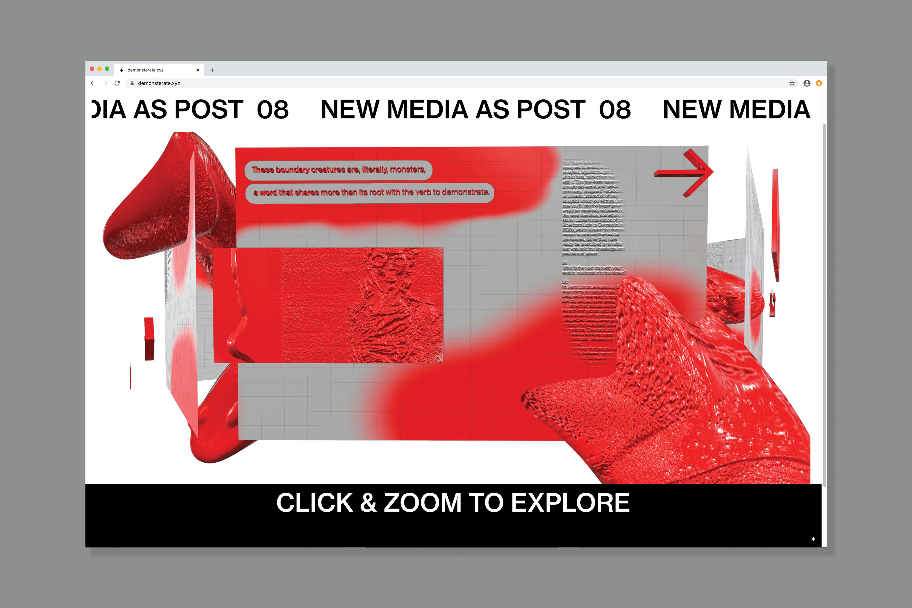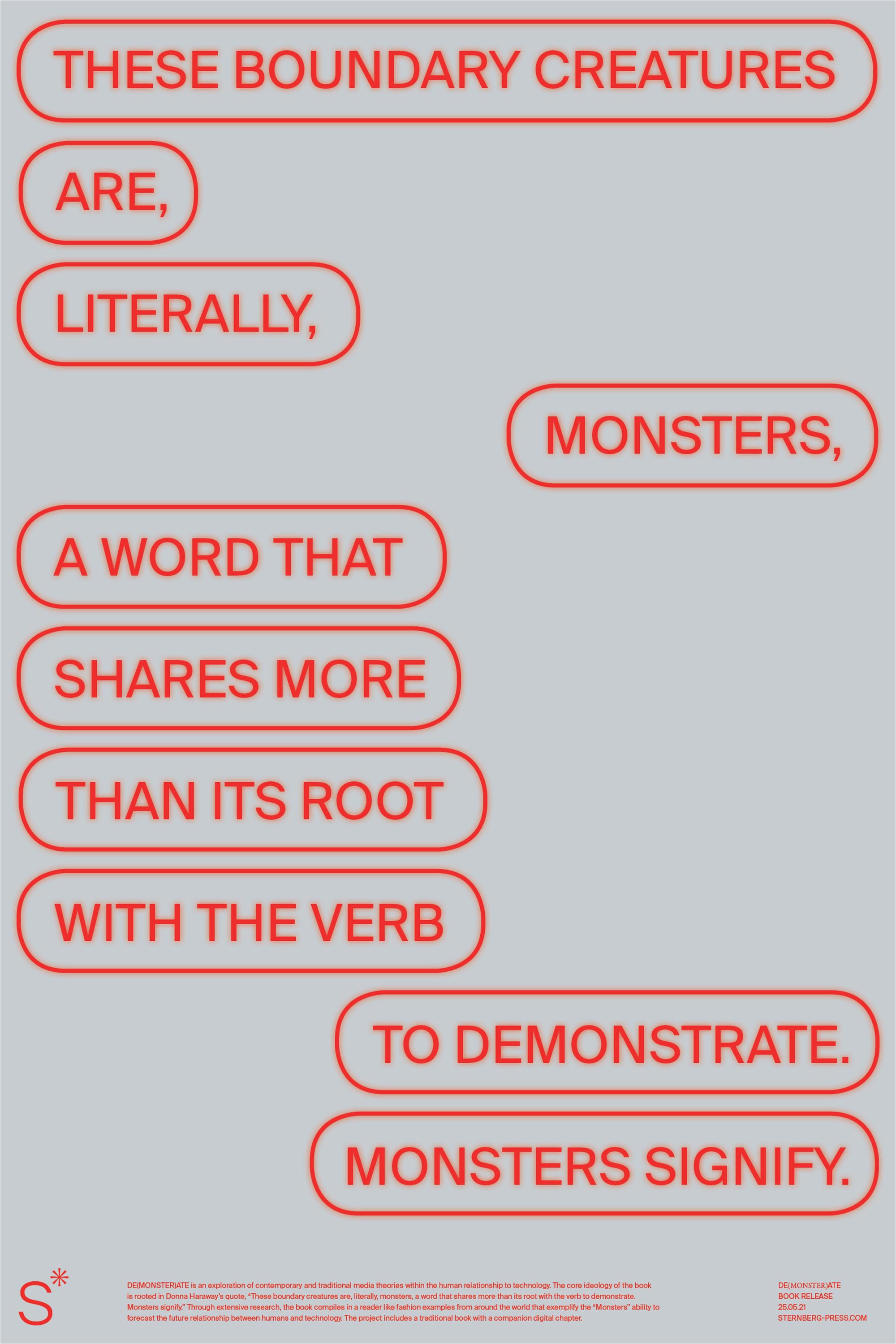 The project includes a companion digital chapter, viewable at www.demonsterate.xyz, as well as a visual identity for Sternberg Press.