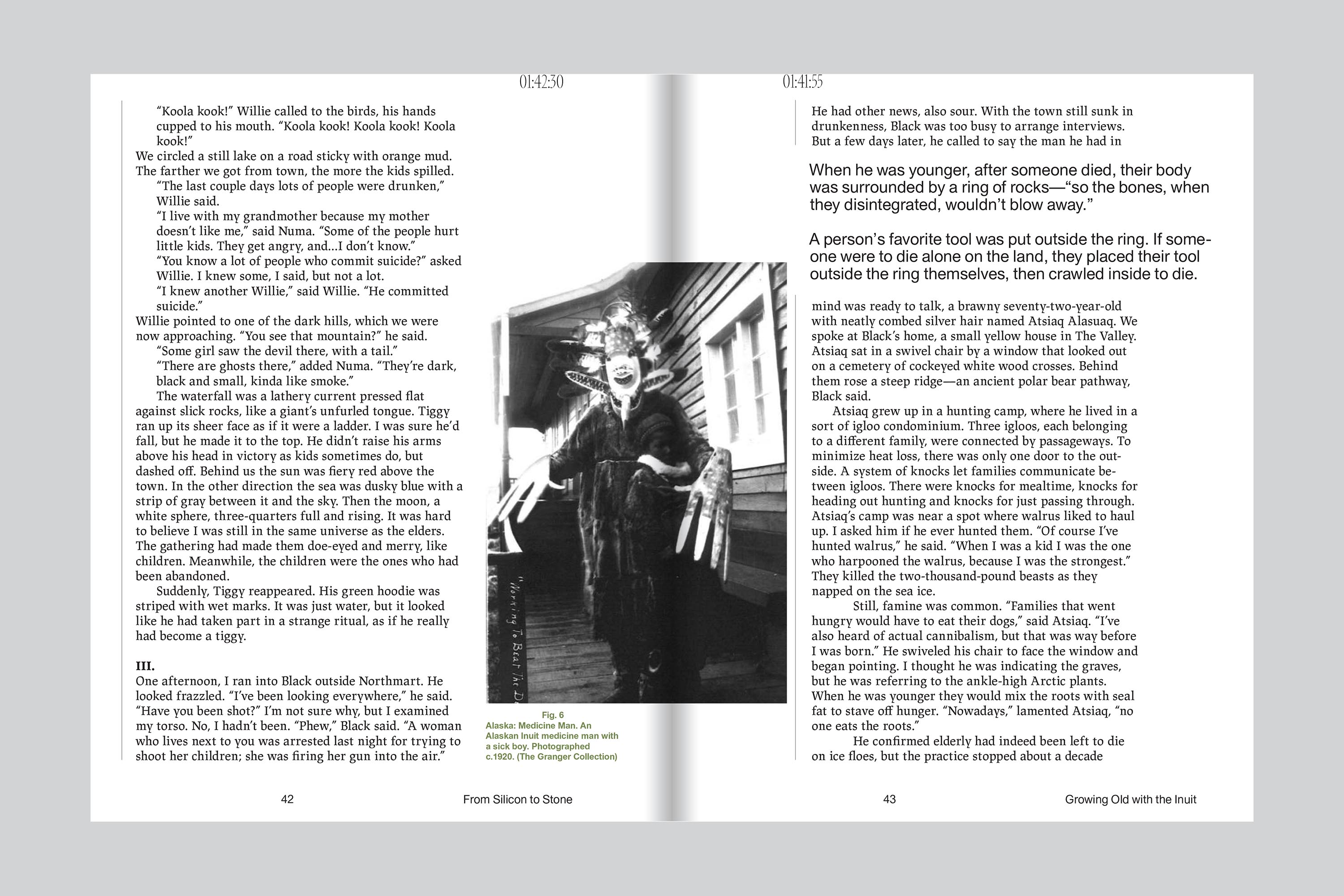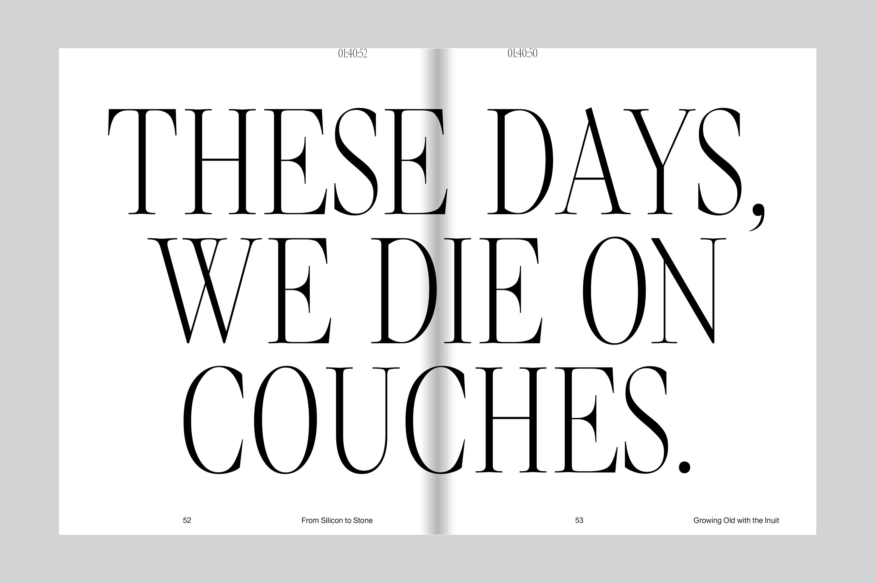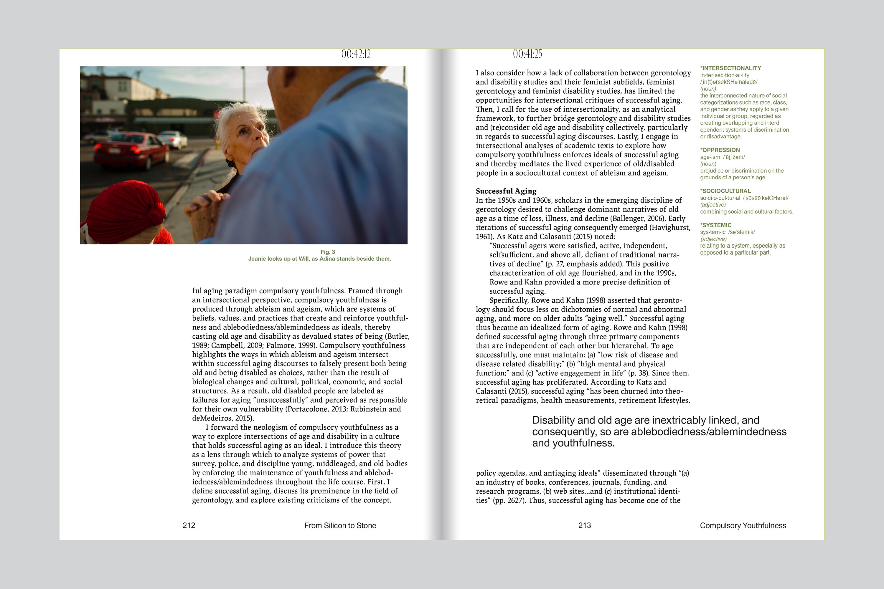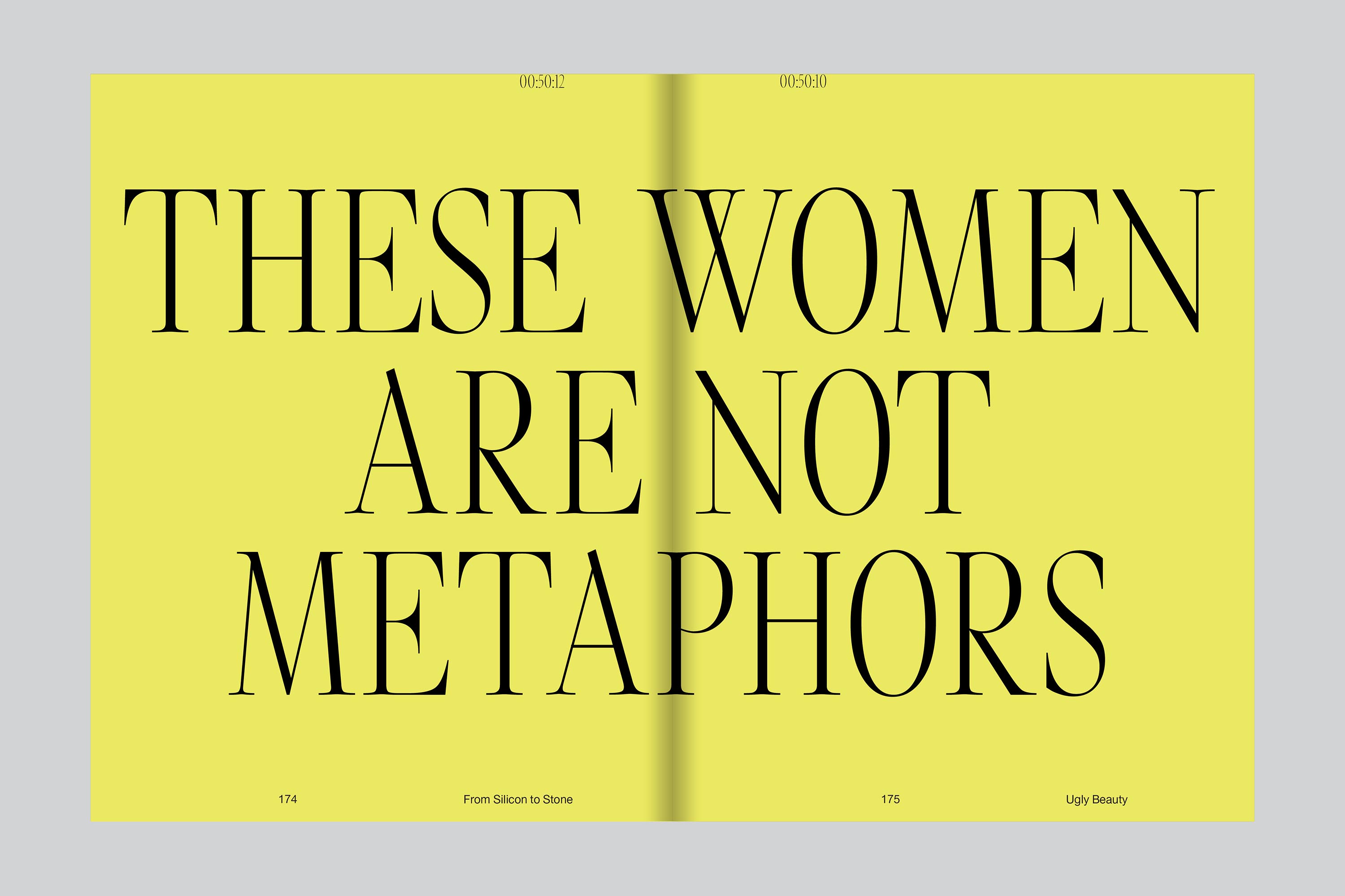 From Silicone to Stone is a body of research that explores socio-cultural views on aging from past and present, compiled into the form of a book. Societal pressures have constructed “youth” to be a normalized state of being where as anything past that, such as growing old, is not. In the same breadth, technological advances have made us believe we are living in a modern techno-society, where sooner rather than later, the idea of eternal youth feels closer to our grasp than ever before.