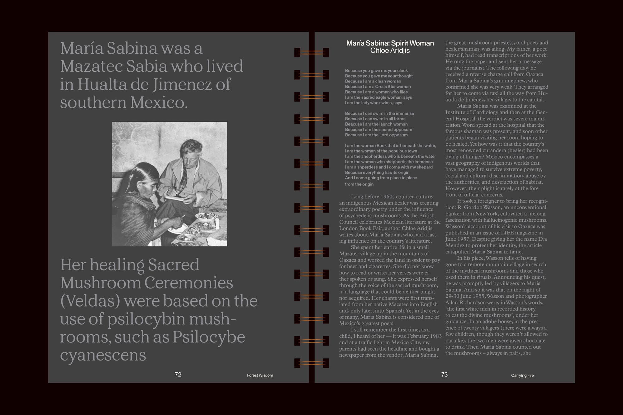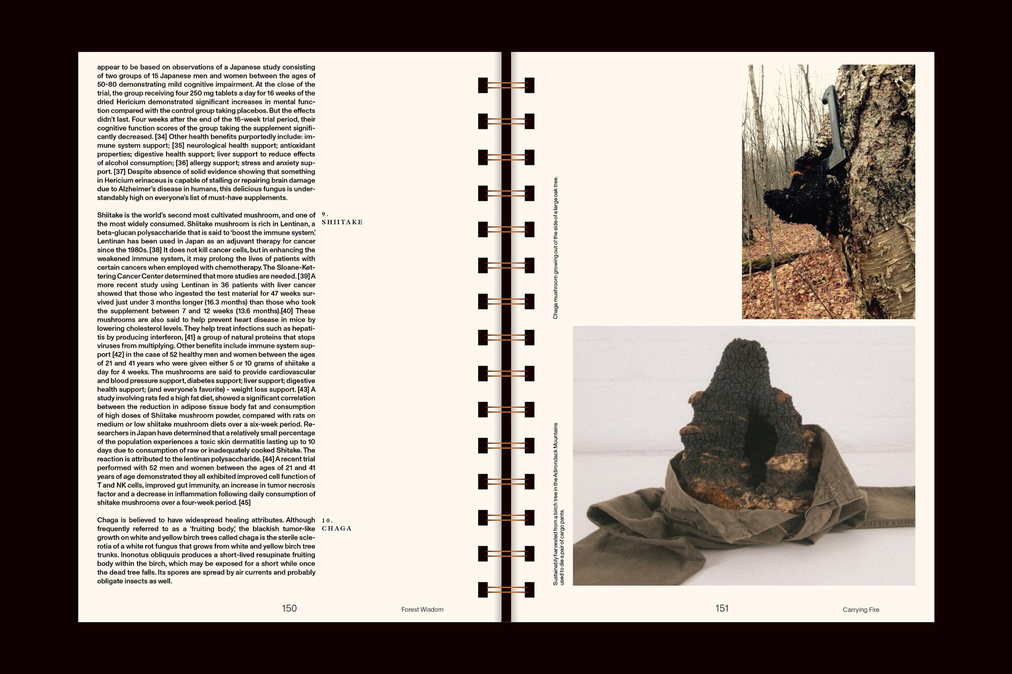 Forest Wisdom is a historical, cultural and visual exploration of the most diverse and complex organism known and unknown to us. Fungi are fundamental to our existence, be it a force of natural selection, a medicinal cabinet, a carrier of fire, a worshipped fruit, a god, a devil, a forest-wide communicator, or a restorative powerhouse. Their networks grow within their best interest, decentralized from a single brain and more as an environmentally-specific organization. They are ever present, and yet they cannot be seen.