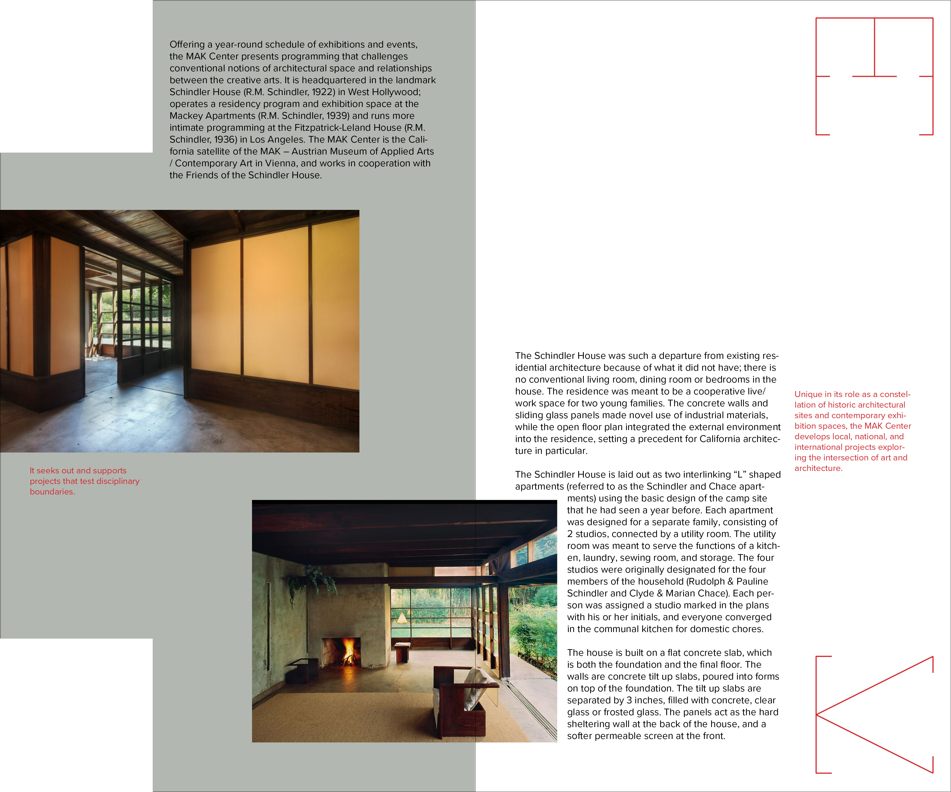 The MAK Center is a think tank for current cultural issues, with focus on the exploration of practical and theoretical ideas in art and architecture.
