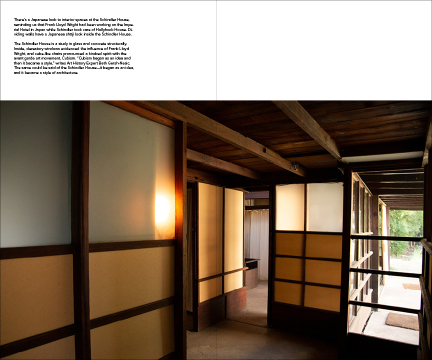 The concept is inspired by the Schindler House with Rudolph M. Schindler's original intent to blur the threshold between interior and exterior.