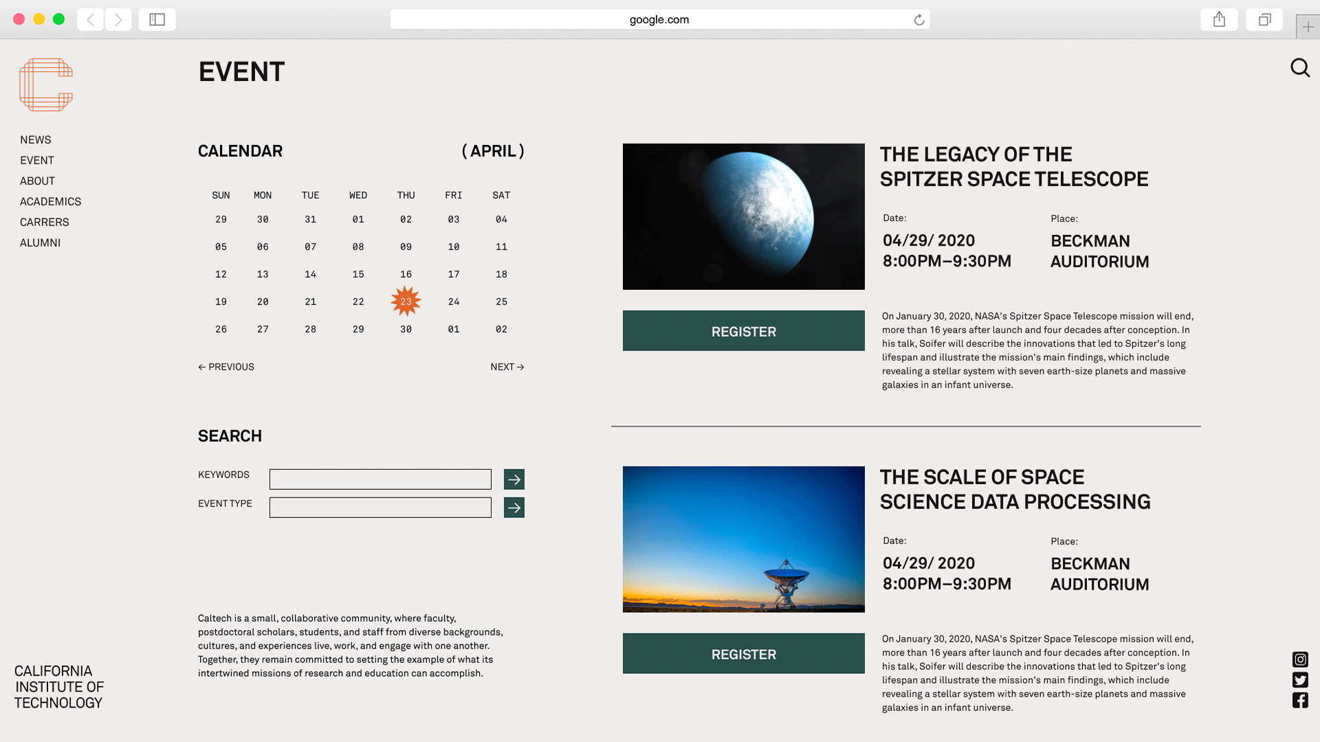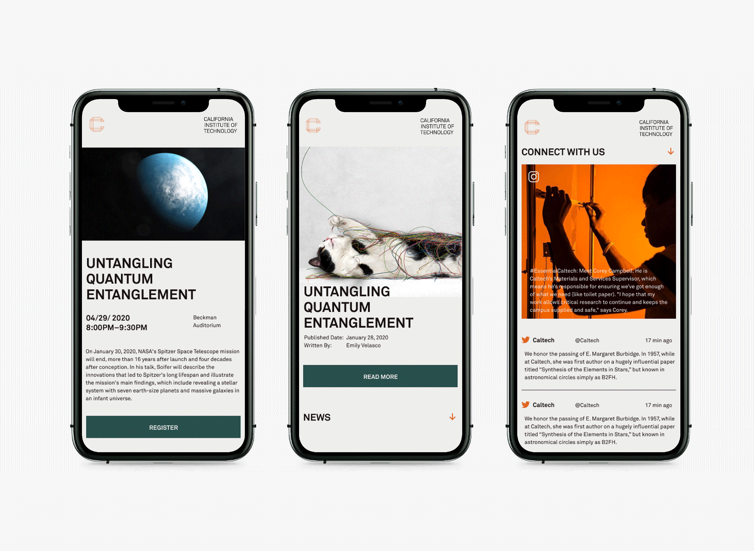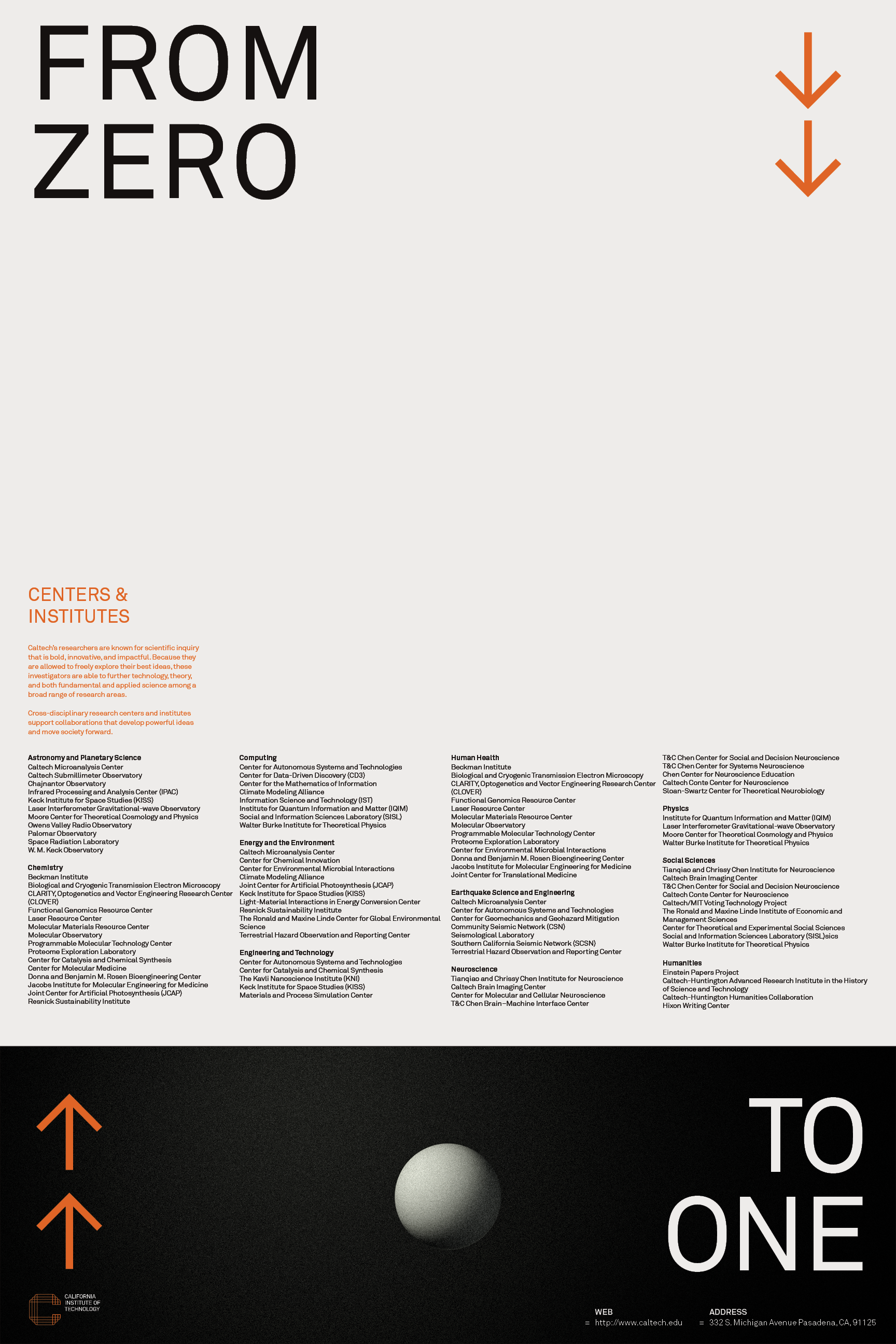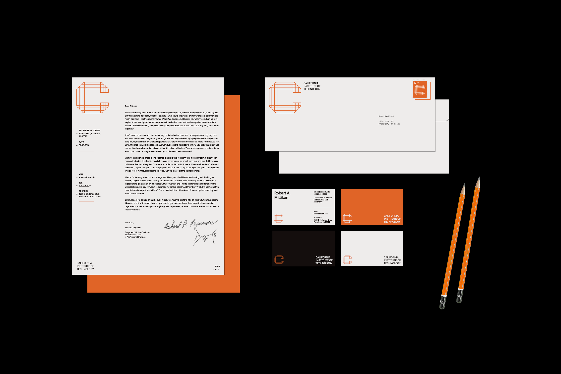 The logo captures this overlapping of curiosity, discovery and interdisciplinary interaction at Caltech. The form language is dynamic and friendly, making science feel more accessible to the public.