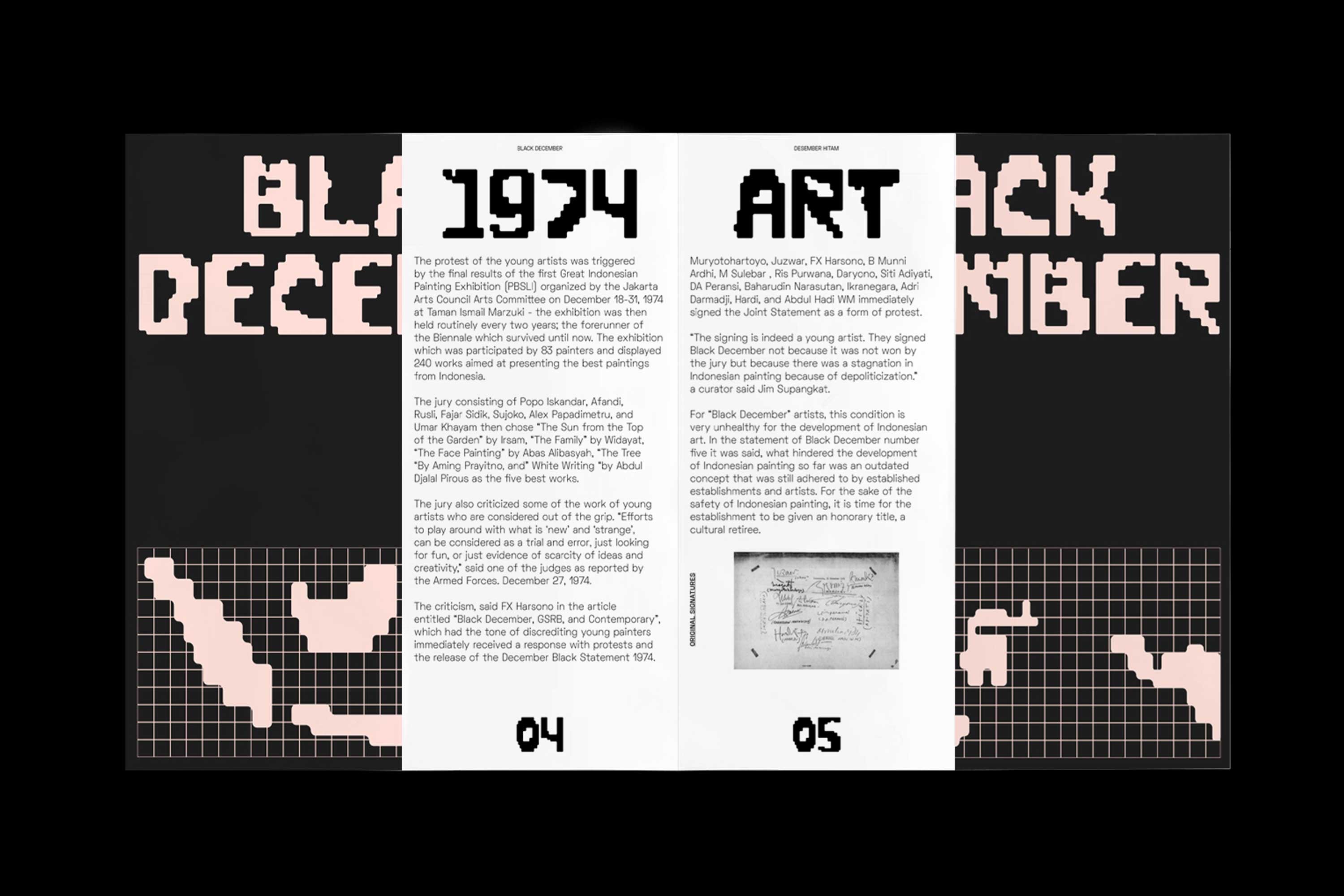 Black December is an art manifesto created in 1974. Established by young optimistic university students in Indonesia. The manifesto critiques Indonesia’s lack of clear cultural strategy in art making, and that the producers of arts and culture are not in the smallest sense aware of the discourse regarding the most basic human problems in Indonesian culture.