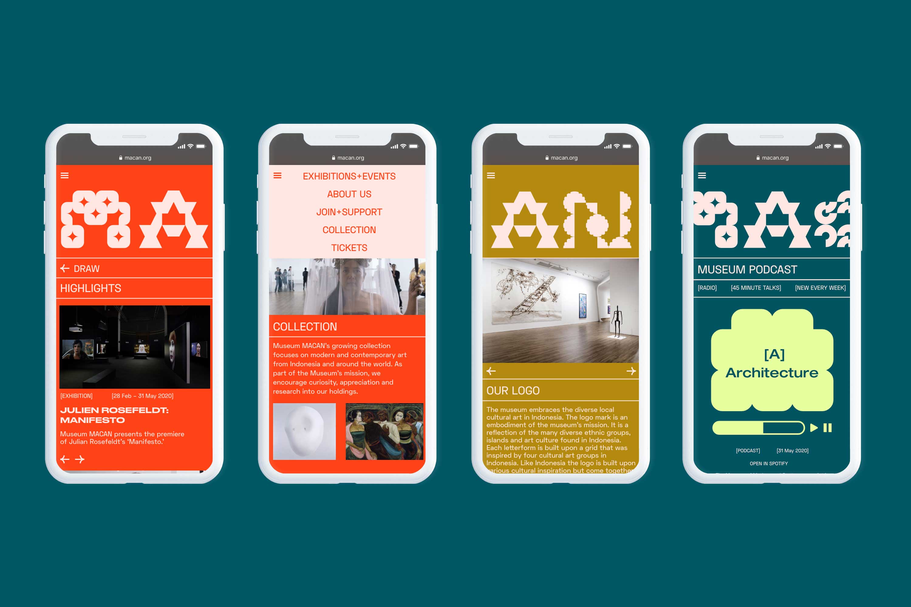 The museum embraces the diverse local cultural art in Indonesia. The logo mark is an embodiment of the museum’s mission. It is a reflection of the many diverse ethnic groups, islands and art culture found in Indonesia. Each letterform is built upon a grid that was inspired by four cultural art groups in Indonesia. Like Indonesia the logo is built upon various cultural inspiration but come together to create a unified identity.