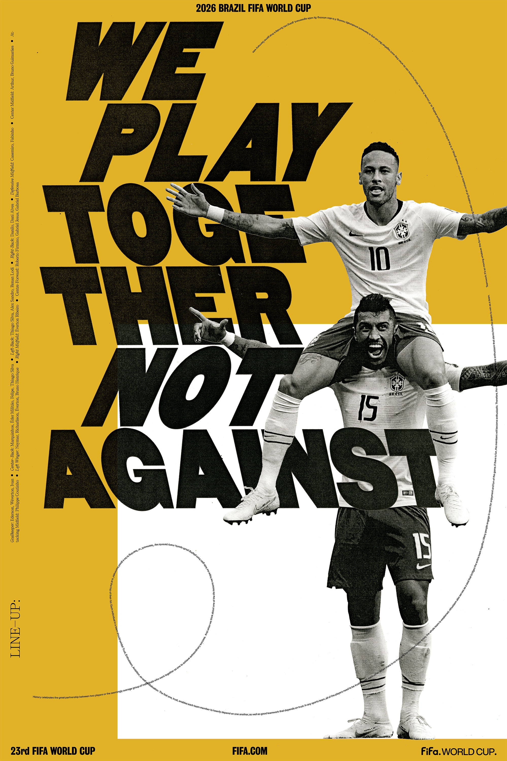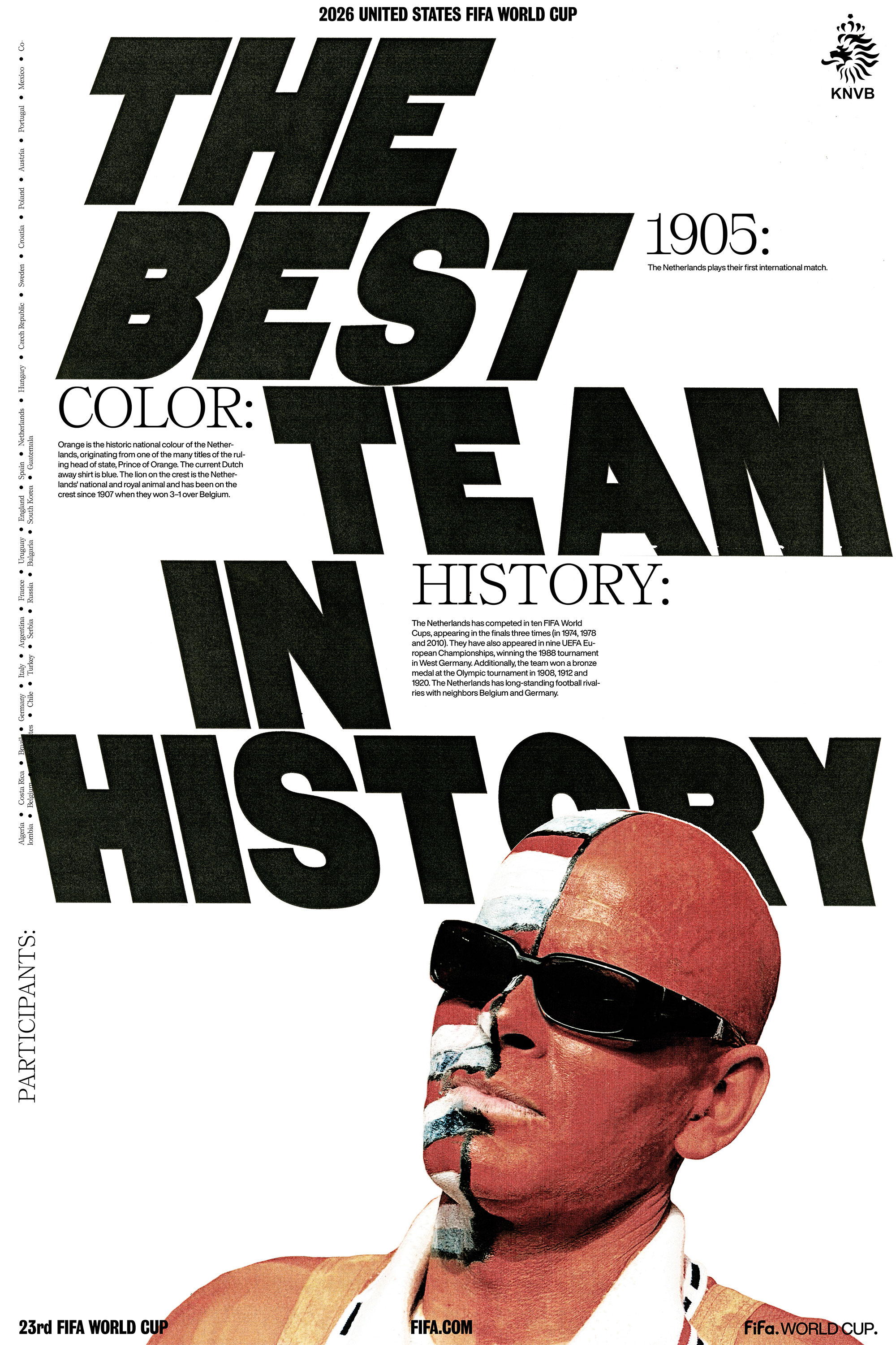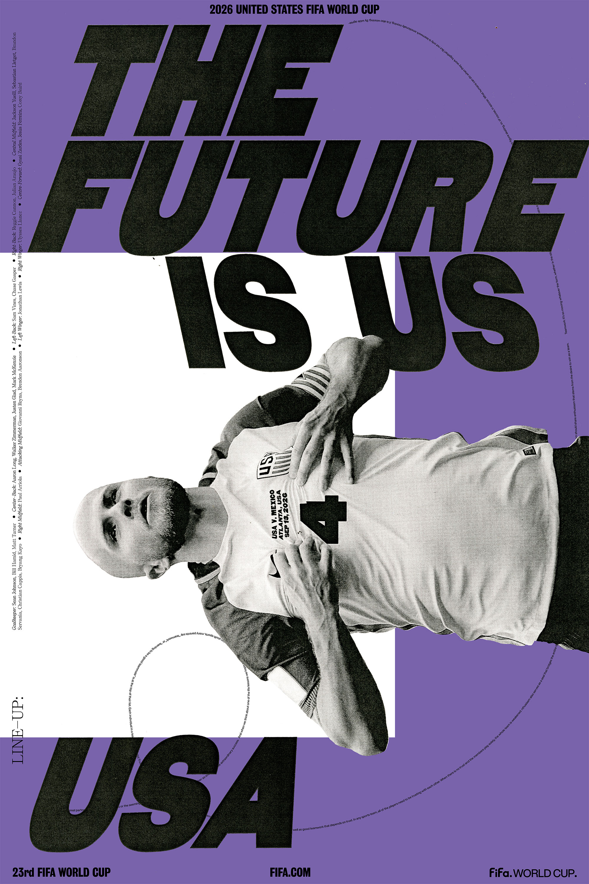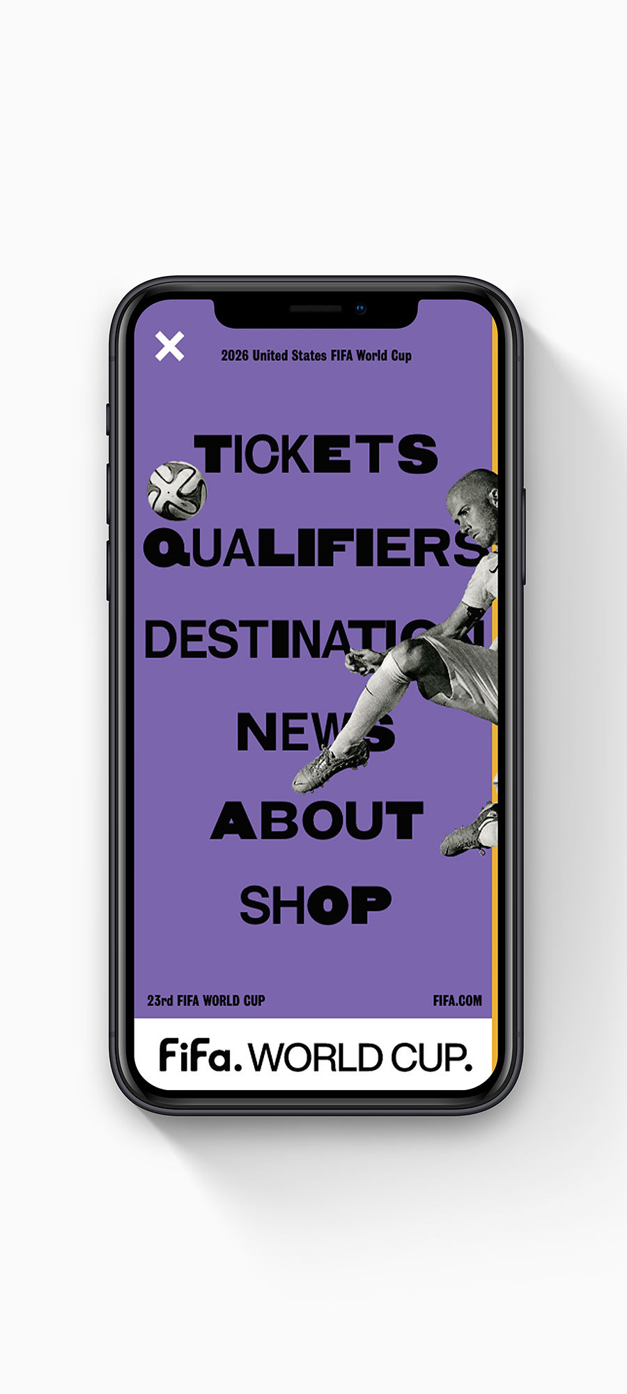 Can Fifa express the feeling of scoring a goal in a World Cup while representing an entire nation and competing against the best of the world? The custom variable typeface highlights and celebrates the extreme diversity, not only between culture, but also within the magic of soccer which is expressed through the typeface’s movement, placement, color, and size.