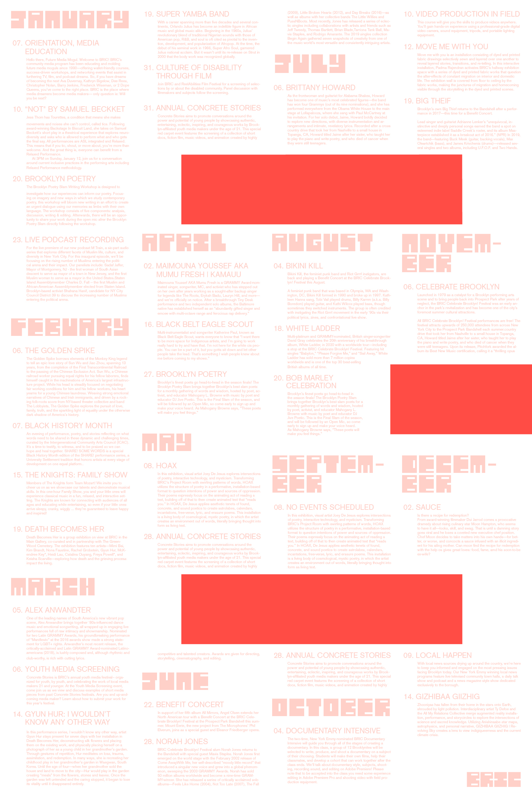 Brooklyn is a place of diversity. BRIC is a cultural museum which promotes artists and people around Brooklyn with protest, art, media, performance, and free speech. The museum ignites learning in people of all ages and centralizes diverse voices that take risk and drive culture forward.